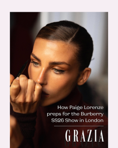 “The first thing I always do is skin prep,” Paige told GRAZIA backstage. “I am so obsessed with Yon-Ka Paris skincare — it changed my skin.”