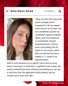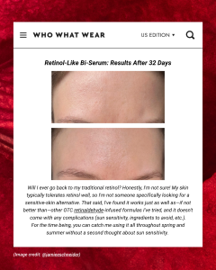 Who What Wear spotlighted our Retinol-Like Bi-Serum as a standout alternative to traditional retinol.